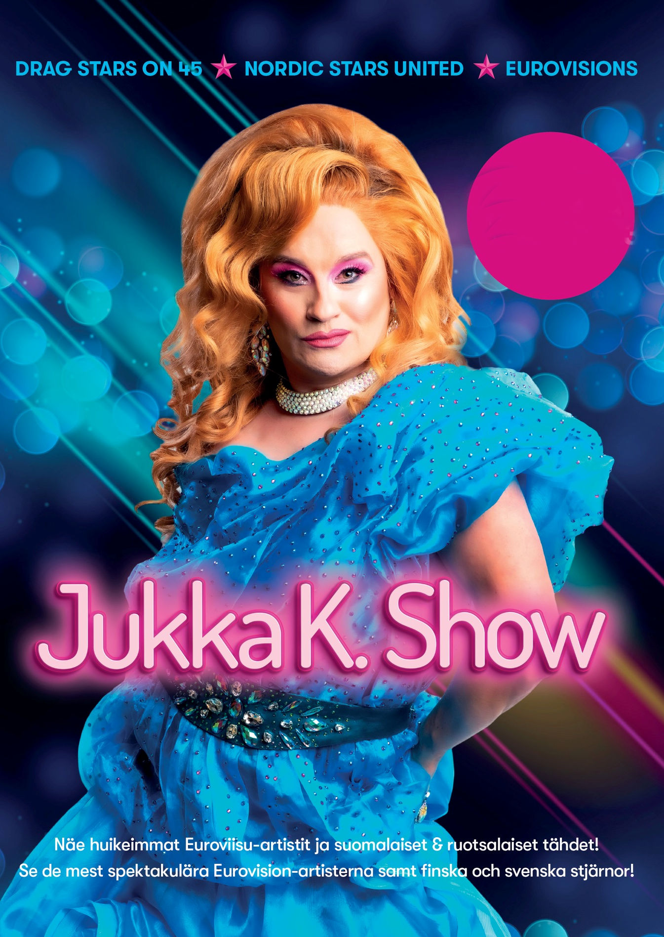 Huikea JukkaK show tempaisee asiakkaasi hetkessä mukaansa drag viihteen jännittävään maailmaan. Show’ssa on säihkettä ja säpinää, näyttäviä pukuja, glamouria ja säärien säihkettä ja sähinää joka sulattaa myös raavaimmankin miehen!. Huumoria ei ole unohdettu yhdestäkään show'sta.